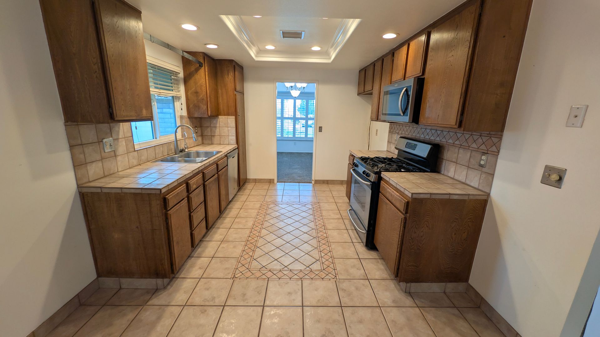 Located in the highly desirable Victoria Neighborhood, this large lot home is available for lease. Upon entry is a large family room with fireplace and convenient kitchen access. The separate living room utilizes a double sided chimney and high ceilings. 3 spacious bedrooms, 2 bathrooms, and plenty of built in storage throughout. Large backyard with mature citrus trees and ample play space. 3 Car garage with built in storage and work area.