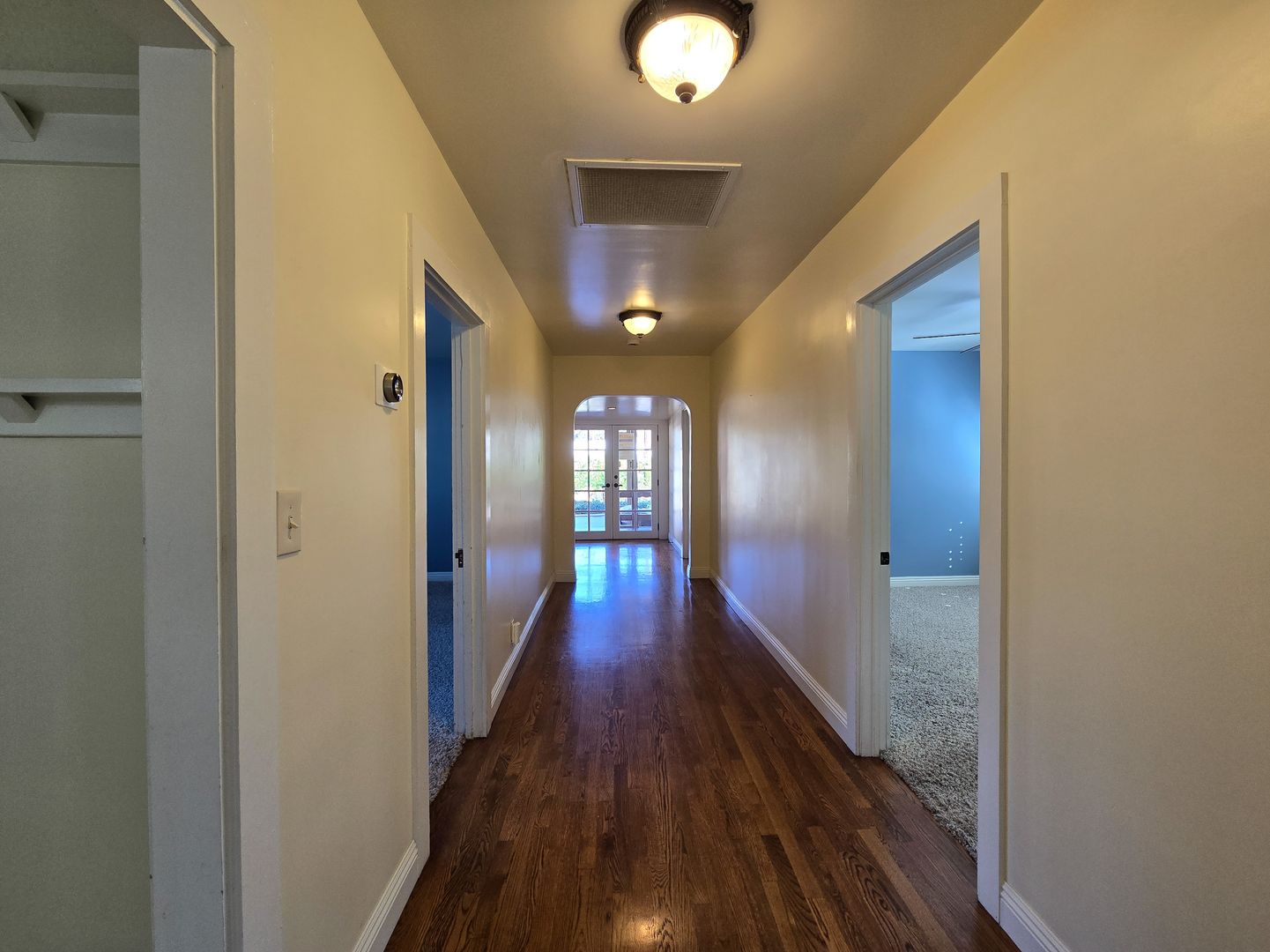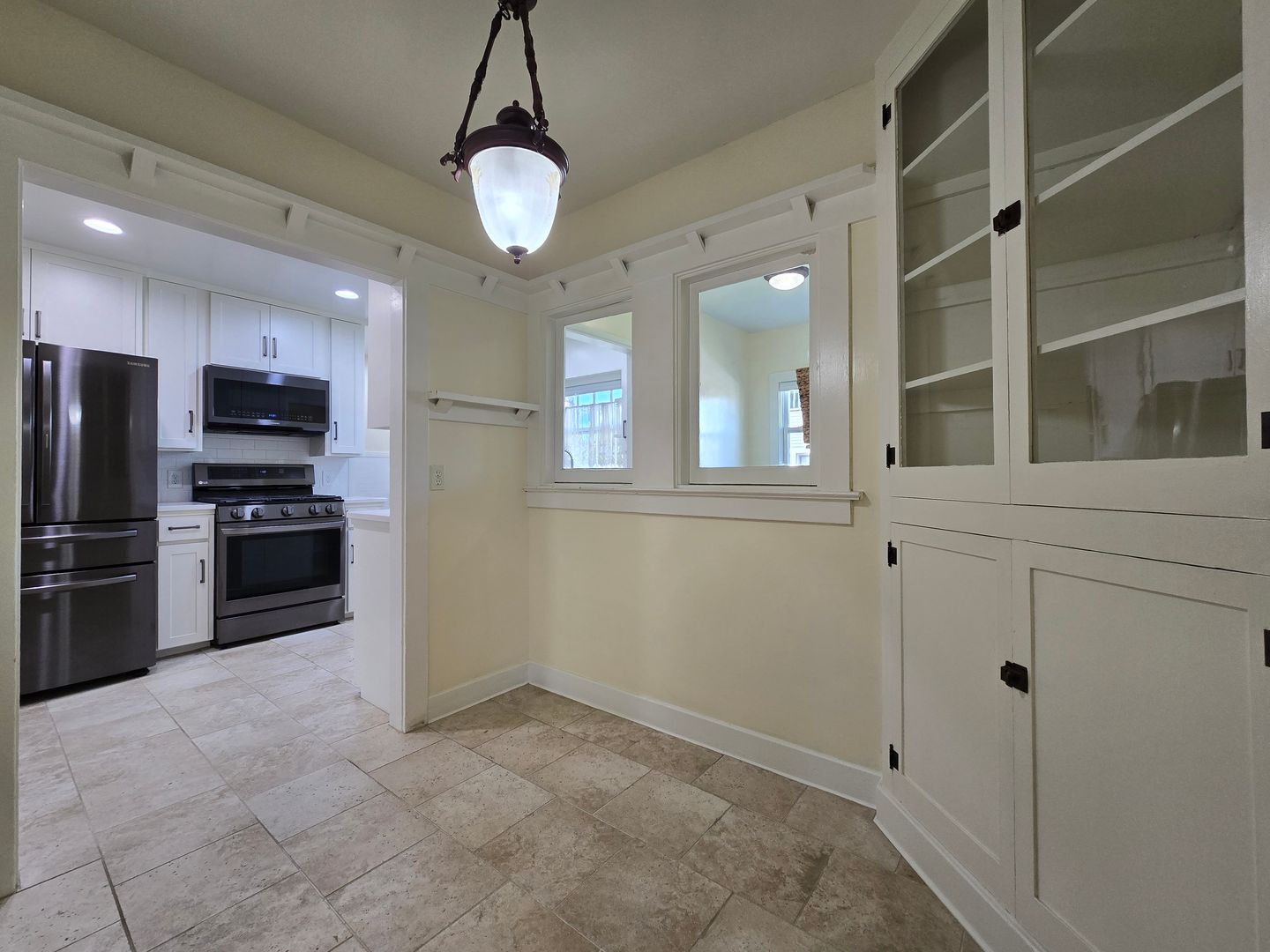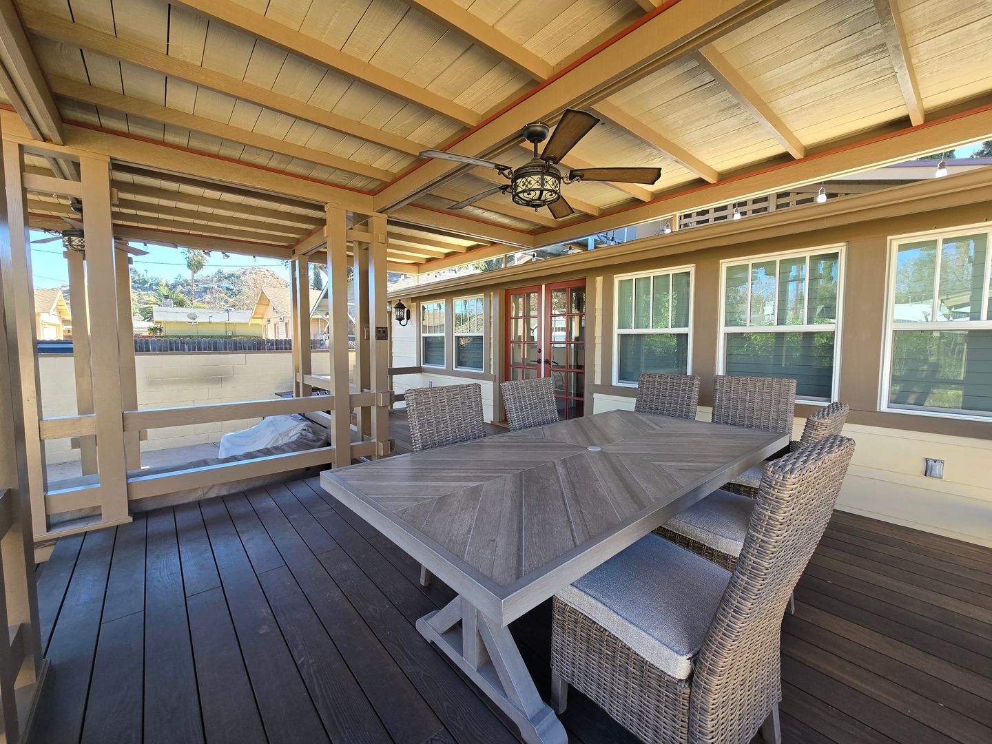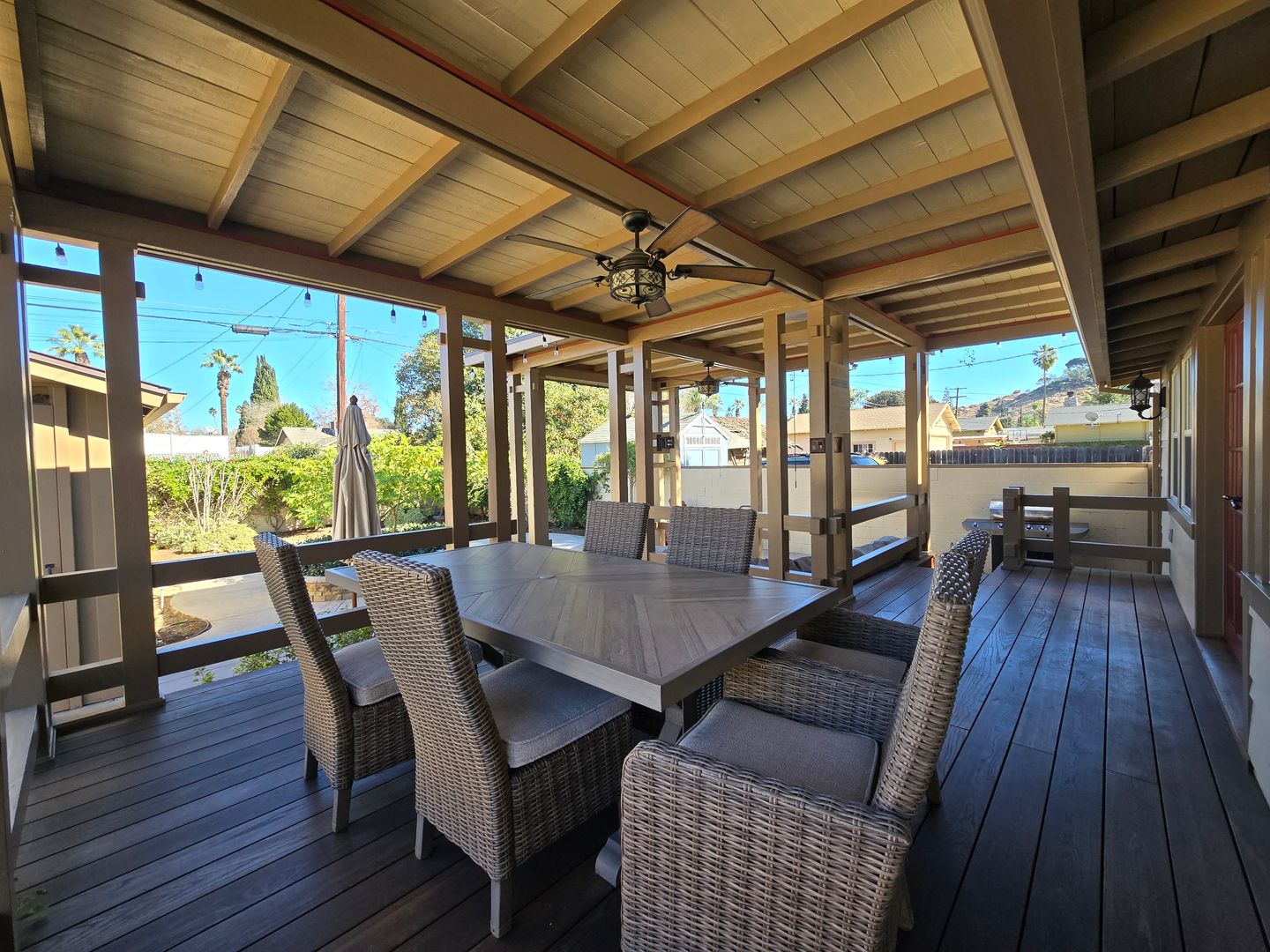 WOOD STREETS HOME - Welcome to this beautiful home in the Wood Streets. It has been meticulously updated, while maintaining its historic charm. The front porch has a fan and space for a couple chairs to enjoy the neighborhood. Upon entering you are greeted by a cozy living room with a brick fireplace that is framed with built-in cabinets and wood beamed ceiling. Off the living room is a small bedroom, which could also be used as an office. Next is the formal dining room with more built ins for extra storage. The kitchen has lots of counter space and plenty of cabinets. From the kitchen you can go to the laundry room or enter the breakfast nook. The hallway is extra wide and ends at French doors that open to the backyard. Off the hallway are the other 3 bedrooms and full bathroom. The bathroom has a large shower, clawfoot tub, sink, and a separate vanity. At the end of the hallway exit to the deck and backyard, which are perfect for entertaining. There are multiple seating areas that have full shade and overhead fans to be comfortable in many types of weather. This home is close to Downtown, the Riverside Plaza, RCC and easy access to the 91 and 60 freeways.