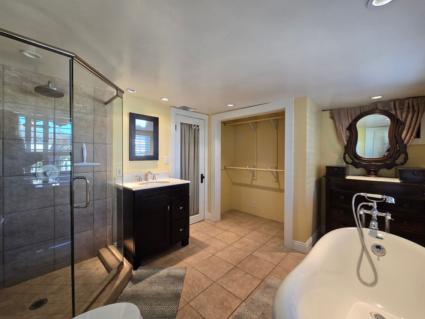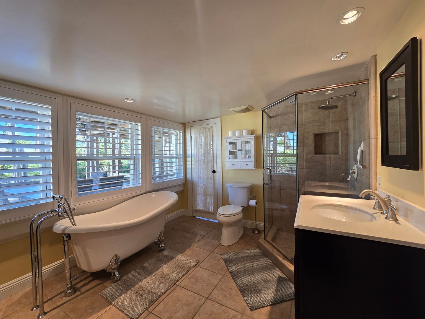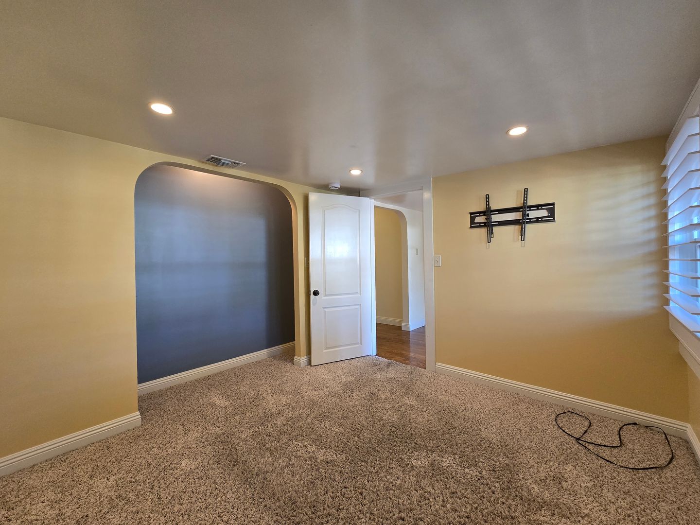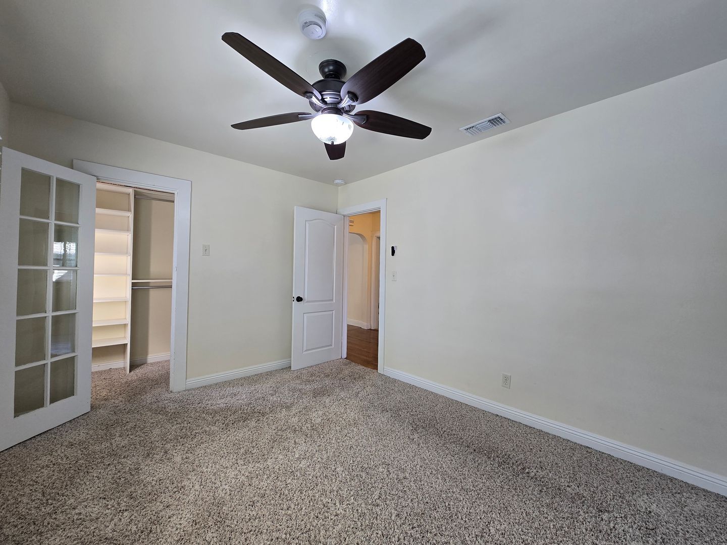 WOOD STREETS HOME - Welcome to this beautiful home in the Wood Streets. It has been meticulously updated, while maintaining its historic charm. The front porch has a fan and space for a couple chairs to enjoy the neighborhood. Upon entering you are greeted by a cozy living room with a brick fireplace that is framed with built-in cabinets and wood beamed ceiling. Off the living room is a small bedroom, which could also be used as an office. Next is the formal dining room with more built ins for extra storage. The kitchen has lots of counter space and plenty of cabinets. From the kitchen you can go to the laundry room or enter the breakfast nook. The hallway is extra wide and ends at French doors that open to the backyard. Off the hallway are the other 3 bedrooms and full bathroom. The bathroom has a large shower, clawfoot tub, sink, and a separate vanity. At the end of the hallway exit to the deck and backyard, which are perfect for entertaining. There are multiple seating areas that have full shade and overhead fans to be comfortable in many types of weather. This home is close to Downtown, the Riverside Plaza, RCC and easy access to the 91 and 60 freeways.