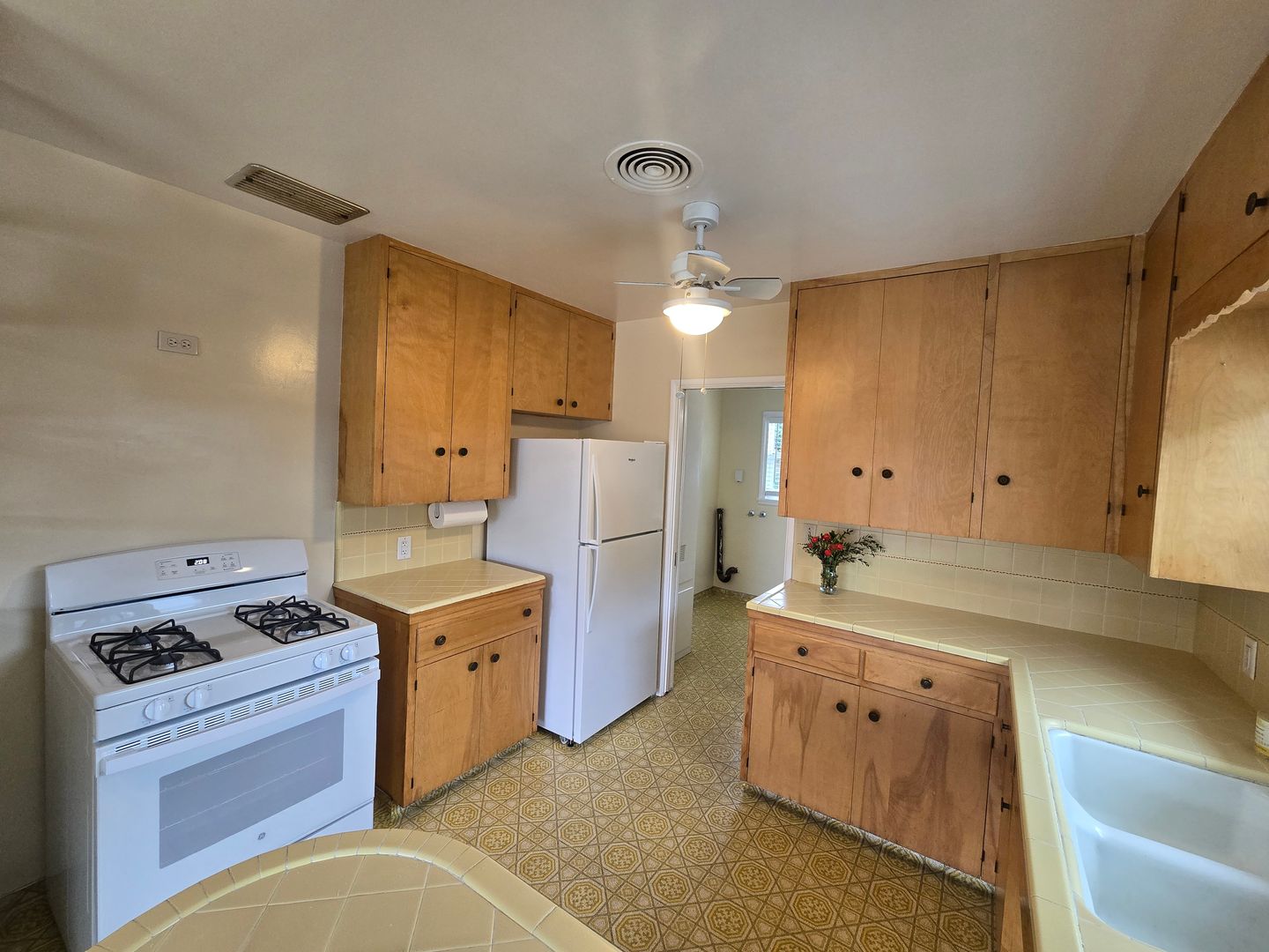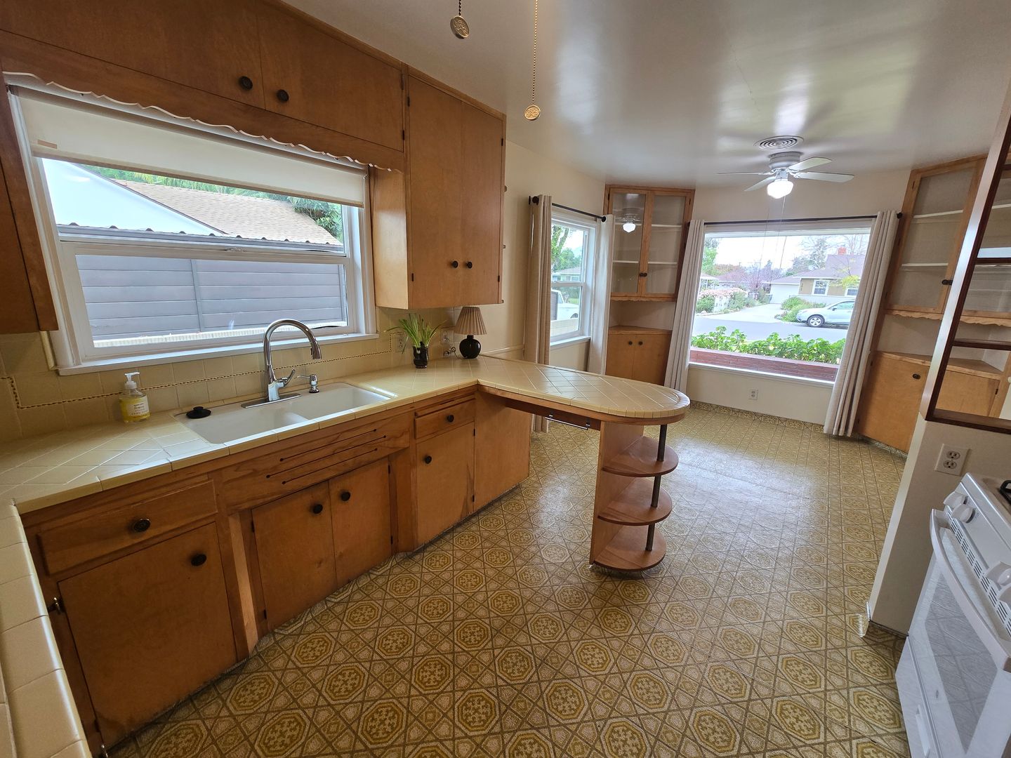 Welcome to this beautifully maintained single-story home nestled on a charming tree-lined street. A spacious front yard creates a warm and inviting first impression. Inside, large windows fill the home with natural light and provide a serene view of the backyard. The dining area overlooks the front yard and flows seamlessly into the open kitchen, which offers abundant storage and functionality. Toward the back of the home, you’ll find a convenient laundry room and bathroom with easy access to the backyard — perfect for indoor-outdoor living. On the opposite wing are three comfortable bedrooms and an additional full bathroom, offering a practical and well-designed layout. The backyard is thoughtfully maintained and features fruit trees along with multiple options for outdoor seating and entertaining. A long driveway and detached two-car garage provide ample parking and additional storage space. Centrally located near restaurants, shopping, and freeway access, this home offers both comfort and convenience.