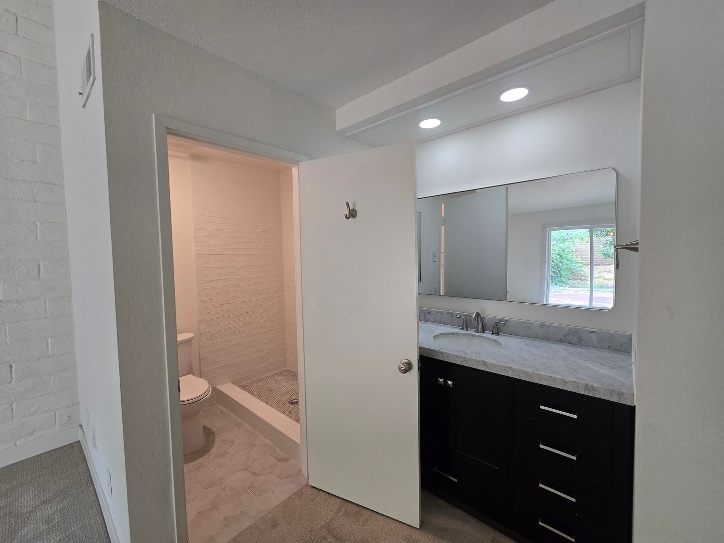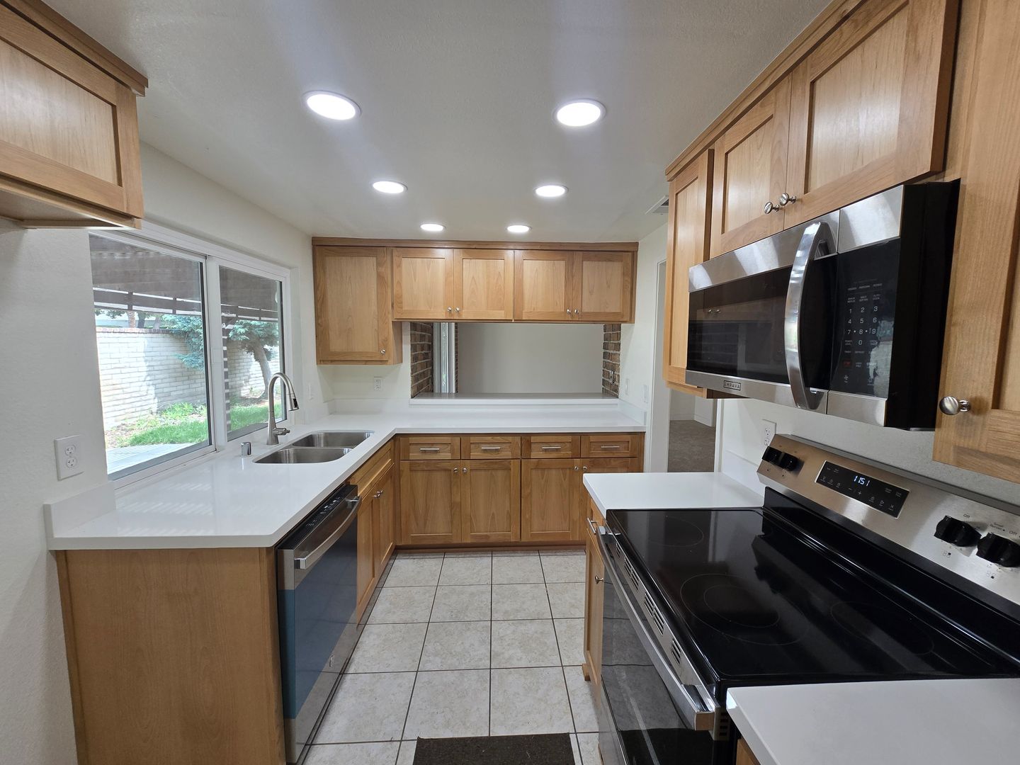 Welcome to this charming single-story home located in the desirable Victoria neighborhood. As you enter through the front gate, you’re welcomed by a private courtyard that creates a warm and inviting approach to the home. Step inside to find a bright and airy living room to the right, featuring vaulted ceilings and a stunning floor-to-ceiling fireplace that makes a striking first impression. To the left, you’ll find a dining area, kitchen, and a comfortable family room with direct access to the backyard—perfect for everyday living and entertaining. A long hallway leads you to the rear of the home, where all bedrooms are thoughtfully situated. The two secondary bedrooms share a spacious hallway bathroom. The primary suite offers vaulted ceilings, dual closets, and a private en-suite bathroom. It also has convenient access to the backyard. The backyard is a true retreat, offering a blend of patio space, green space, and mature fruit trees—ideal for relaxing or hosting gatherings. It also has an attached 2 car garage with direct access to the kitchen for convenience. Centrally located, this home provides easy freeway access and is just minutes from shopping, dining, and everyday conveniences.